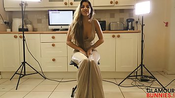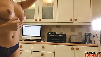 Девушка на кухне под светом прожекторов, решила участвовать в съемке домашнего соло шоу. Для начала красотка с длинными волосами сняла с себя одежду, показала большие дойки, после чего продемонстрировала черные трусики. На такую красотку хочется смотреть постоянно, она супер секс бомба.