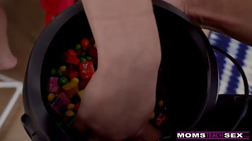 Парню сегодня крупно повезло так как рядом с ним находятся шикарные красотки с большими дойками и упругими сиськами. Телочки в чулках для начала подарили ему двойной минет, а уже после одна из них насела волосатой писькой на член. Вторая няшка в этот момент терлась об ее грудь и целовала парня.