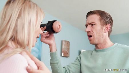 Красотка своему одинокому другу сначала решила подарить искусственную вагину, с которой он будет проводить свой досуг и дрочить. А потом передумала. Просто тот случайно перед ней большой пенис засветил и блондинка решила реальную вагину ему предложить. Красотка с упругими сиськами сделала шикарный минет приятелю с большим членом, а потом уже и реальную пилотку подставила вместо резиновой. Светловолосая девица как мокрой пиздой ствол оседлала, так сразу начала стонать от реального блаженства.