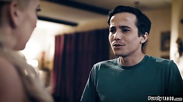 Мамочка блондинка с большими дойками решила немного пошалить и побаловать своего молодого брюнета вниманием и заботой. Она для начала сделала ему минет, после чего раздвинула ноги и впустил член на всю длину. Красотка двигает булочками, стонет и просто наслаждается проникновением агрегата.
