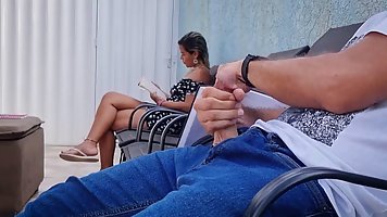 Соблазнительная мамочка с большими дойками решила немного пошалить. Она заметила, что молодой незнакомец надрачивает свой пенис. Она к нему подошла, встала на колени, открыла ротик и принялась жадно сосать член. Красотка сделала королевский минет и приняла много спермы в ротик.