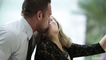 Жена отправилась с подругами на пару дней за границу и мужчина решил этим воспользоваться. Он привел к себе в дом любовницу с большой жопой, чтобы от души с ней покувыркаться. Блондинка в чулках сделала ему шикарный минет, а потом они принялись трахаться на диване во всех позах.