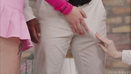 Блондинка и ее рыжеволосая подруга сегодня решили время провести с одним темнокожим парнем. Просто негр обещал, что готов каждой подарить удовольствие. Тем более, что они обе ему нравились. Вот девушки сегодня и принялись с двух сторон его большой черный член одаривали оральными ласками. А негр кайфовал от качественного минета и уже предвкушал, каким крутым будет секс втроем. Во время ЖМЖ траха негр каждую цыпочку прокатил на своем крепком члене и подарил подругам по яркому оргазму, от которого обе кончили.