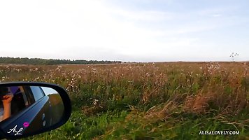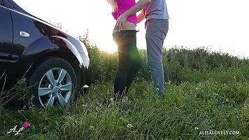 Парень с девушкой решили немного разнообразить свою сексуальную жизнь. Сладкая парочка выехала на природу, где прелестная телочка стянула с себя штаны и подставила для любви тугую письку. Пару минут и твердый болт партнера уже проникает внутрь ее дырочки и доводит пигалицу до оргазма на свежем воздухе.