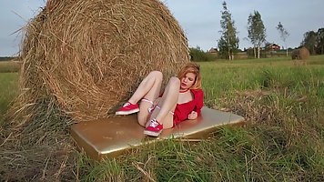 Рыженькая девушка на сеновале затрахала свою киску шаловливыми пальцами