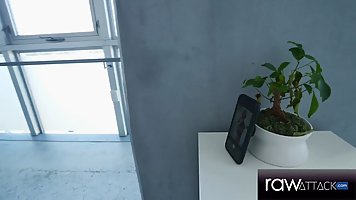Брюнетка сама напросила на то, чтобы парень посадил ее на член. Симпатичная телочка то и дело виляла попкой перед ним, а потом в наглую предложила потрогать ее большие дойки. Как только парень увидел ее сиськи, тут же посадил девку в чулках на член, чтобы она активно поработала своей мокрой киской.