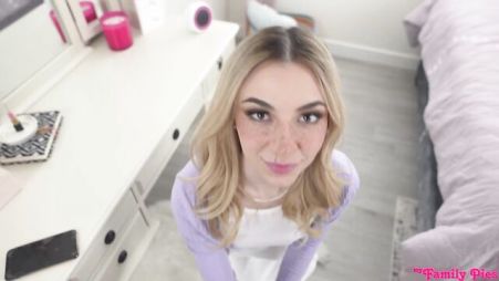 Сводный брат совершенно случайно увидел аппетитную киску сестры. Молодая блондинка как раз дрочила письку, просматривая порно ролики, а братец застукал ее за этим занятием. Когда девица увидела, как встал член брата, то решила сделать ему минет, а после насладиться проникнвоением большого ствола.