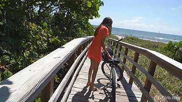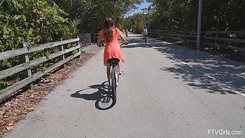 Во время прогулки на велосипеде, молоденькая и стройная девушка с длинными ногами решила немного насладиться обществом видео камеры. Она не просто задрала свое платье, она решила покрутить задницей и похвастаться упругими булочками. У нее отлично получается играть роль эротической модели.